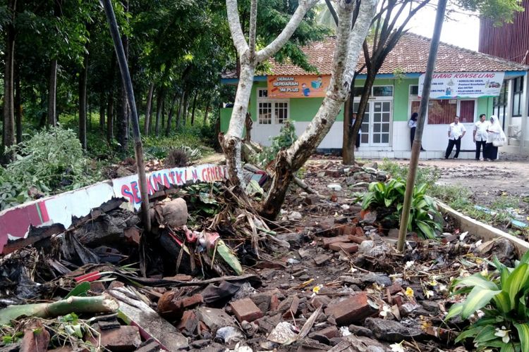BANYUWANGI,KOMPAS.com - Tembok pagar Puskesmas Gitik Kecamatan Rogojampi, Banyuwangi, Jawa Timur roboh karena tidak kuat menahan banjir akibat hujan yang turun sejak Kamis dini hari (8/6/2017).