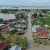 Puluhan rumah rusak akibat luapan lumpur yang berasal dari air bah.